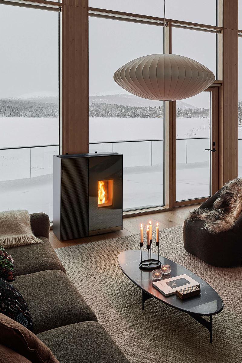 A EIKO 365 é uma salamandra a pellets inovadora que proporciona conforto térmico todo o ano, combinando a força de um sistema de aquecimento para o inverno com a eficiência de um ar condicionado no verão. Graças à sua tecnologia avançada, adapta-se às estações graças a uma gestão inteligente da temperatura.