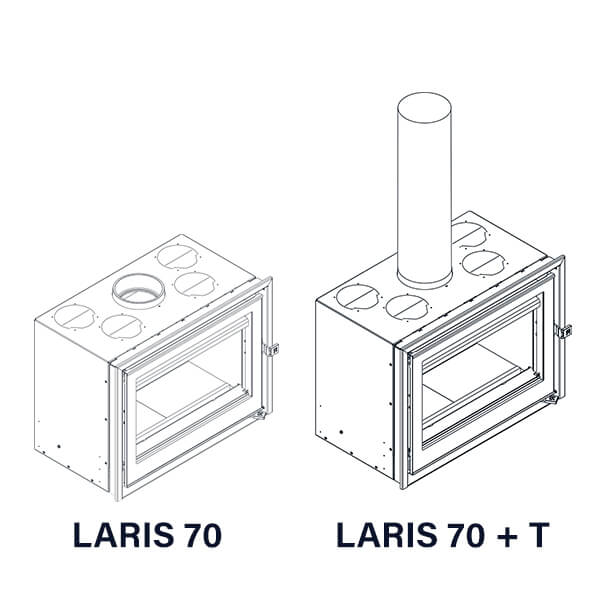 A nova linha de de inserts "LARIS" destaca-se por proporcionar uma visão mais ampla da chama relativamente às linhas anteriores, com formatos de 1 Visão (frontal), 2 Visões (de canto) ou 3 Visões.