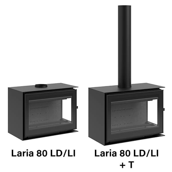 A nova linha de de salamandras "LARIA" destaca-se por proporcionar uma visão mais ampla da chama relativamente às linhas anteriores, com formatos de 1 Visão (frontal), 2 Visões (de canto) ou 3 Visões.